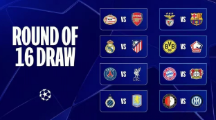 Resultaten av lottningen för Champions League-omgången av 16 har fastställts, rankad på första plats i tabellen, Arsenal, rankad på tredje plats, Atletico Madrid, rankad på femte plats, Aston Villa, rankad åttonde, Champions League-mästaren som gick vidare till slutspelet - Real, och den franska Ligue 1-överherren i Paris tilldelas samma halva. Den kallas "Super Death Zone" av fans som bär Paris Saint-Germain tröja.