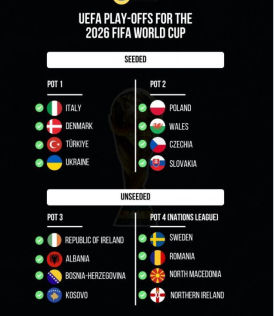 De andraplacerade lagen i varje grupp kommer att tävla i nästa års slutspel för att avgöra de slutgiltiga kvalplatserna. Grupp 1: Italien, Danmark, Turkiet, Ukraina. Grupp 2: Polen, Wales, Tjeckien, Slovakien. Grupp 3: Irland, Albanien, Bosnien och Hercegovina, Kosovo. Grupp 4: Sverige, Rumänien, Nordmakedonien, Nordirland. Slutspelslottningen kommer att äga rum den 20 november lokal tid. De första gruppspelsmatcherna är mycket efterlängtade, med fans i Italien landslagströja som hoppas att deras lag kan sluta först och kvalificera sig till VM 2026, eftersom de har missat de två senaste VM-matcherna.