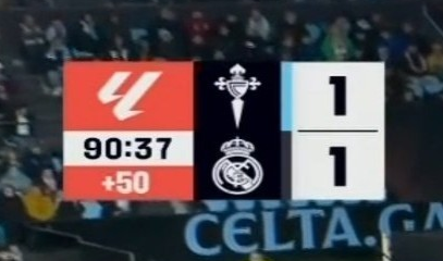 Den 27:e omgången av La Liga fortsatte, med Real Madrid som besökte Celta Vigo. Real Madrids anfallande nyckelspelare, Kylian Mbappé, förblev borta på grund av skada. Det är värt att notera att den officiella La Liga-reportern av misstag lade till 50 minuters tilläggstid på resultattavlan, Fans i matchtröjor fotboll skämtade om händelsen.